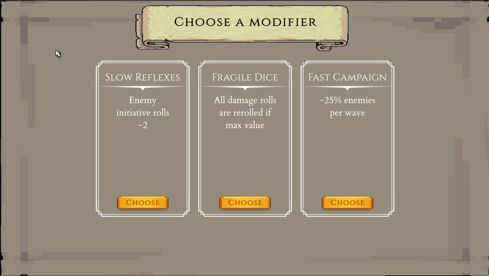 Modifiers permanently alter how the run plays.